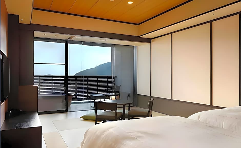 Guests will have a special experience as the quadruple room offers a private open-air bath. The quadruple room includes a private bathroom, well-fitted with a walk-in shower, a bath, a bidet, a hairdryer and slippers. Featuring a balcony, this quadruple room also provides air conditioning, tatami and a flat-screen TV with satellite channels. The unit offers 2 beds.